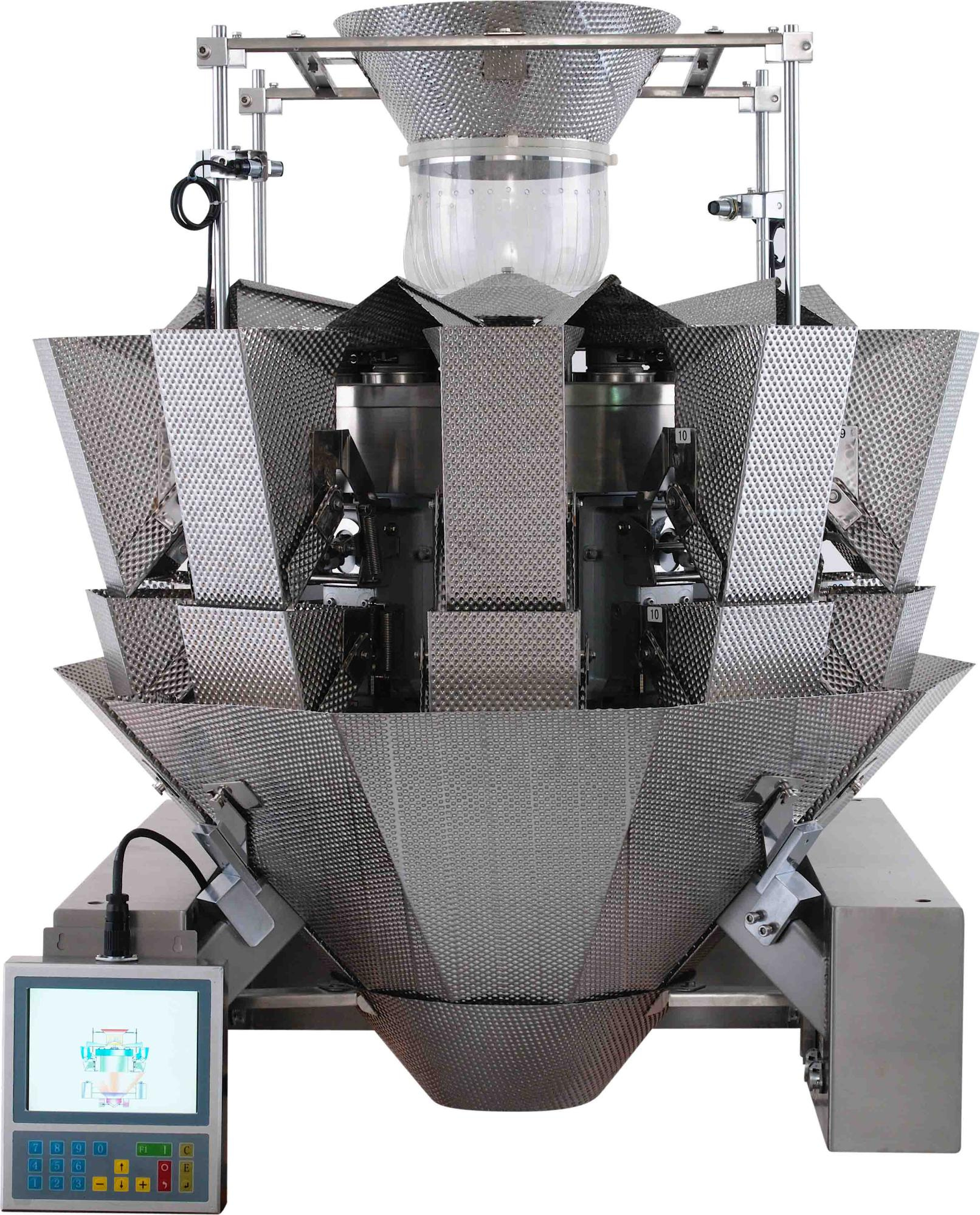 Мультиголовочный двухкаскадный дозатор предназначен для автоматического весового дозирования сыпучих, плотных, мелких, однородных, необъемных продуктов (леденцы и конфеты, орехи, крупы, сухофрукты, чай, кофе, семена, специи, короткие макаронные изделия, сухие корма для животных и т. д.) и не пищевых (гайки, болты, шайбы и проч.) продуктов методом перебора комбинаций набранных доз при совместной работе с одним или двумя упаковочными автоматами.