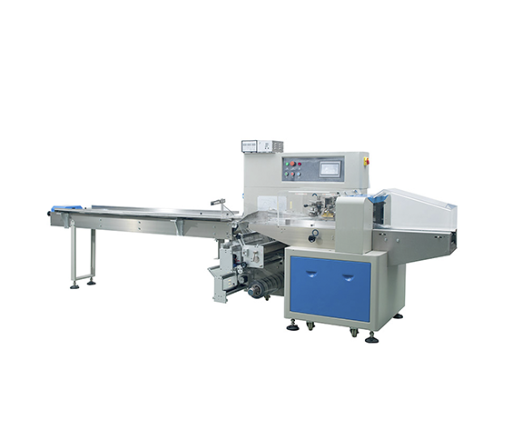 Машина упаковывает в трехшовные пакеты флоупак (пакет подушка):