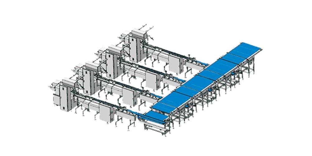 Линия упаковки в швейцарские рулоны предназначена в основном для продуктов с правильной формы, например, швейцарских рулетов, сэндвич-коржей, треугольные лепешки и т. д.