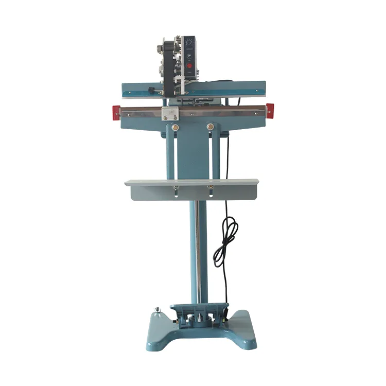 Запайщик приводится в действие посредством ножной педали. Для упрощения работы оператора имеется регулируемая по высоте подставка для пакетов.