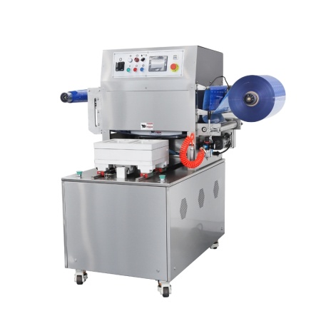 Функционал запайщика основан на автоматическом управлении. Оператор должен только уложить продукцию в лотки и забрать готовые упаковки. Запайщик автоматически выполняет весь процесс вакуумизации, газонаполнения, запайки и обрезки пленки.
