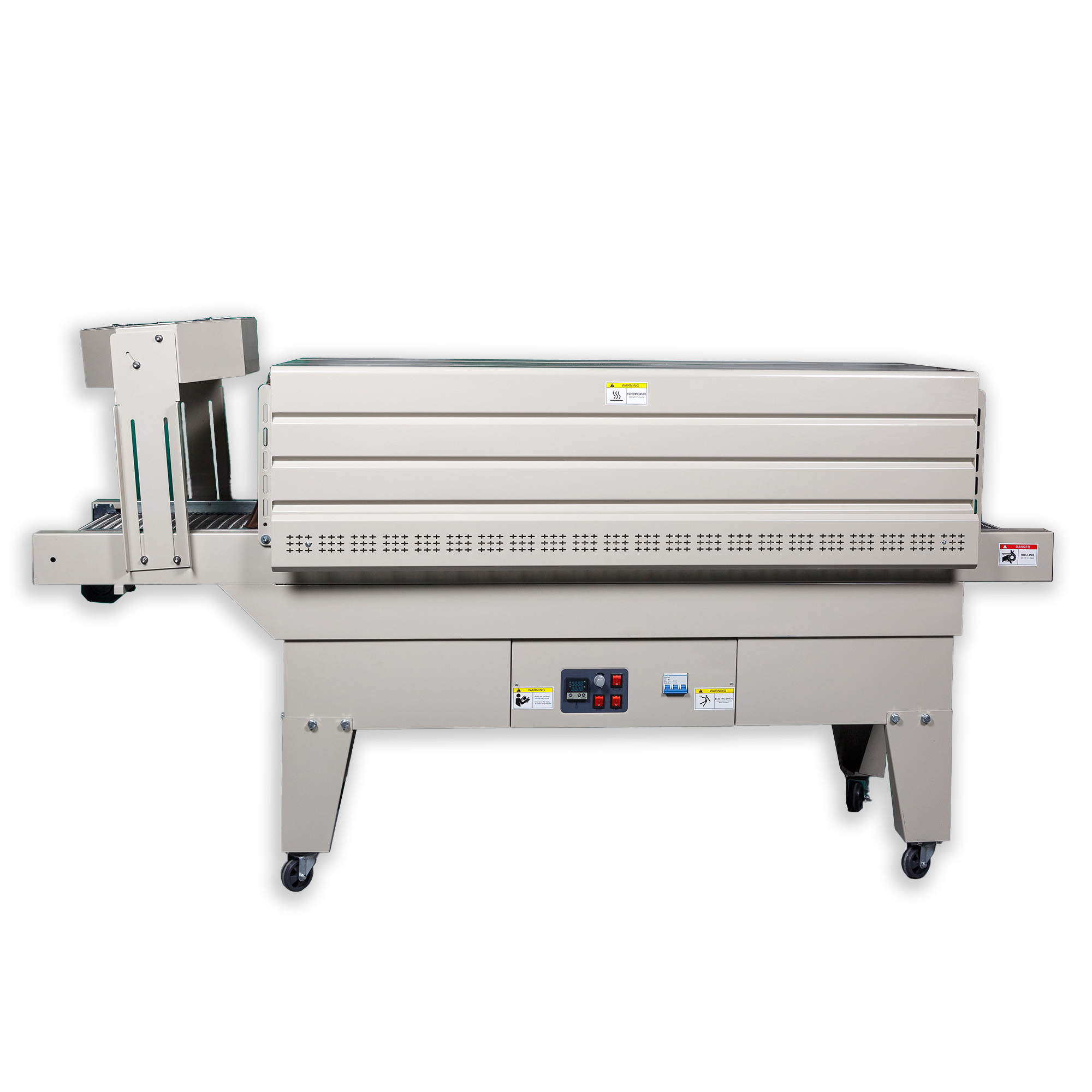 Продукт помещается в термоусадочную PE пленку и по конвейерной ленте с заданной скоростью движется через тоннель. В тоннеле под воздействием обдува горячим воздухом пленка дает усадку и плотно обтягивает находящийся внутри продукт.